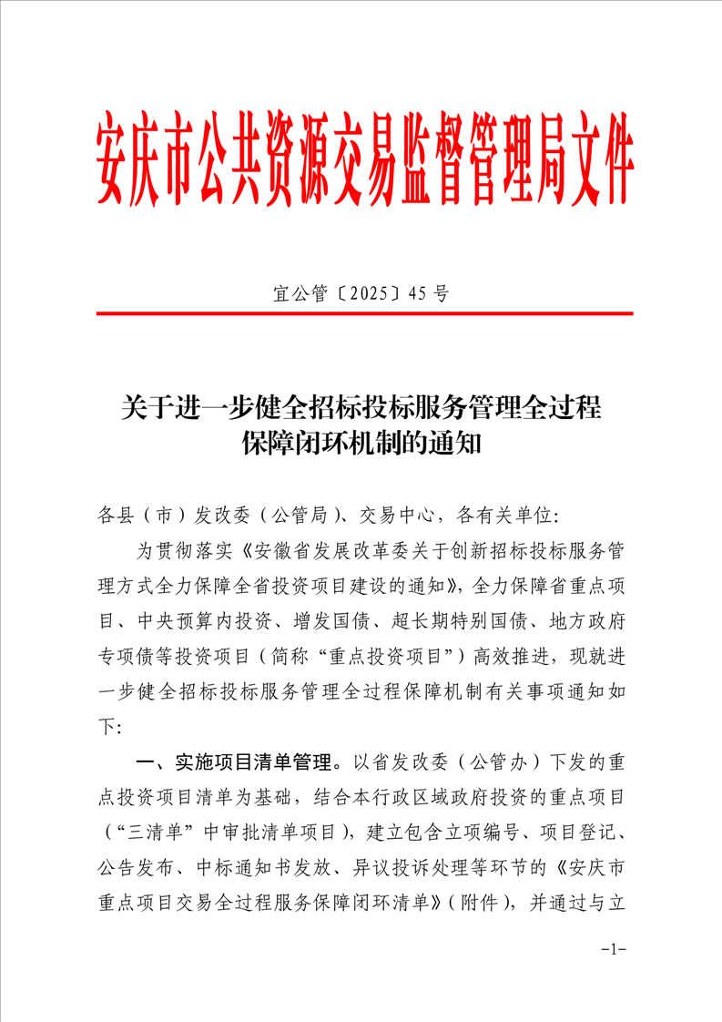 關(guān)于進(jìn)一步健全招標(biāo)投標(biāo)服務(wù)管理全過程保障閉環(huán)機(jī)制的通知