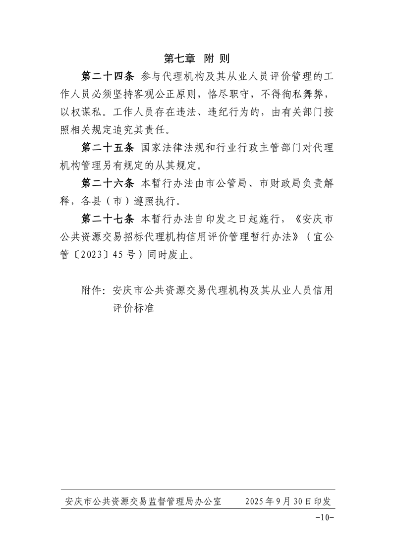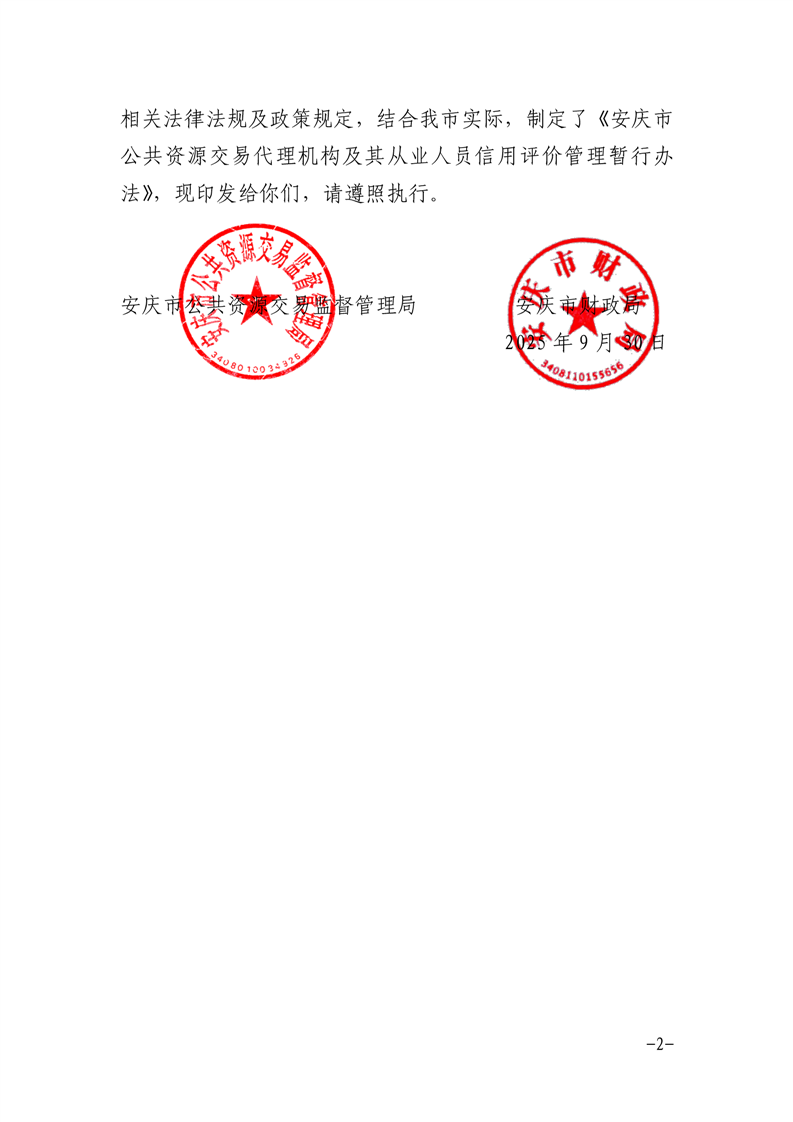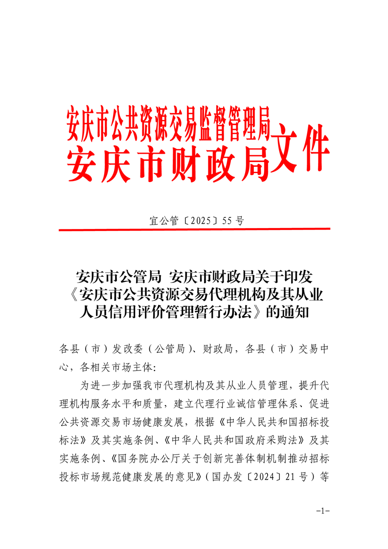 安慶市公管局 安慶市財(cái)政局關(guān)于印發(fā)《安慶市公共資源交易代理機(jī)構(gòu)及其從業(yè)人員信用評(píng)價(jià)管理暫行辦法》的通知